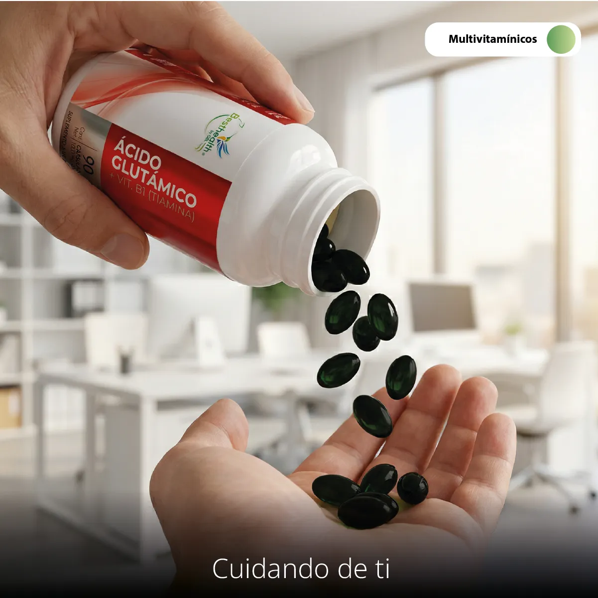 Best Health presenta su fórmula de Ácido Glutámico con Vitamina B1 (Tiamina), desarrollada para complementar tu nutrición diaria de forma práctica. Este suplemento alimenticio combina ingredientes seleccionados en una base de aceite de soya para facilitar su ingesta.