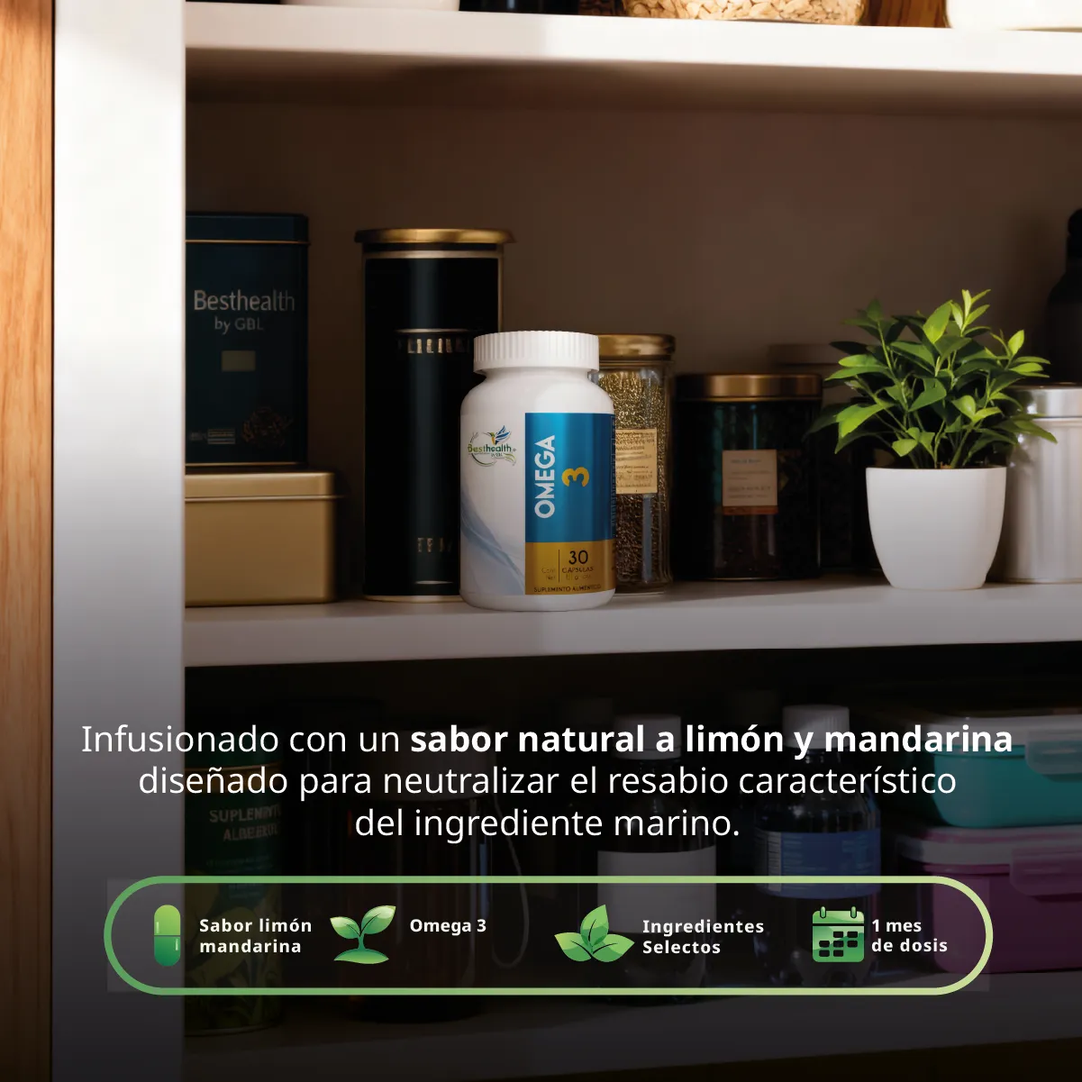 Descubre una forma agradable de consumir ácidos grasos esenciales con Omega 3 de Best Health. Esta presentación de 30 cápsulas ofrece aceite de pescado rico en EPA y DHA, infusionado con un sabor natural a limón y mandarina diseñado para neutralizar el resabio característico del ingrediente marino.