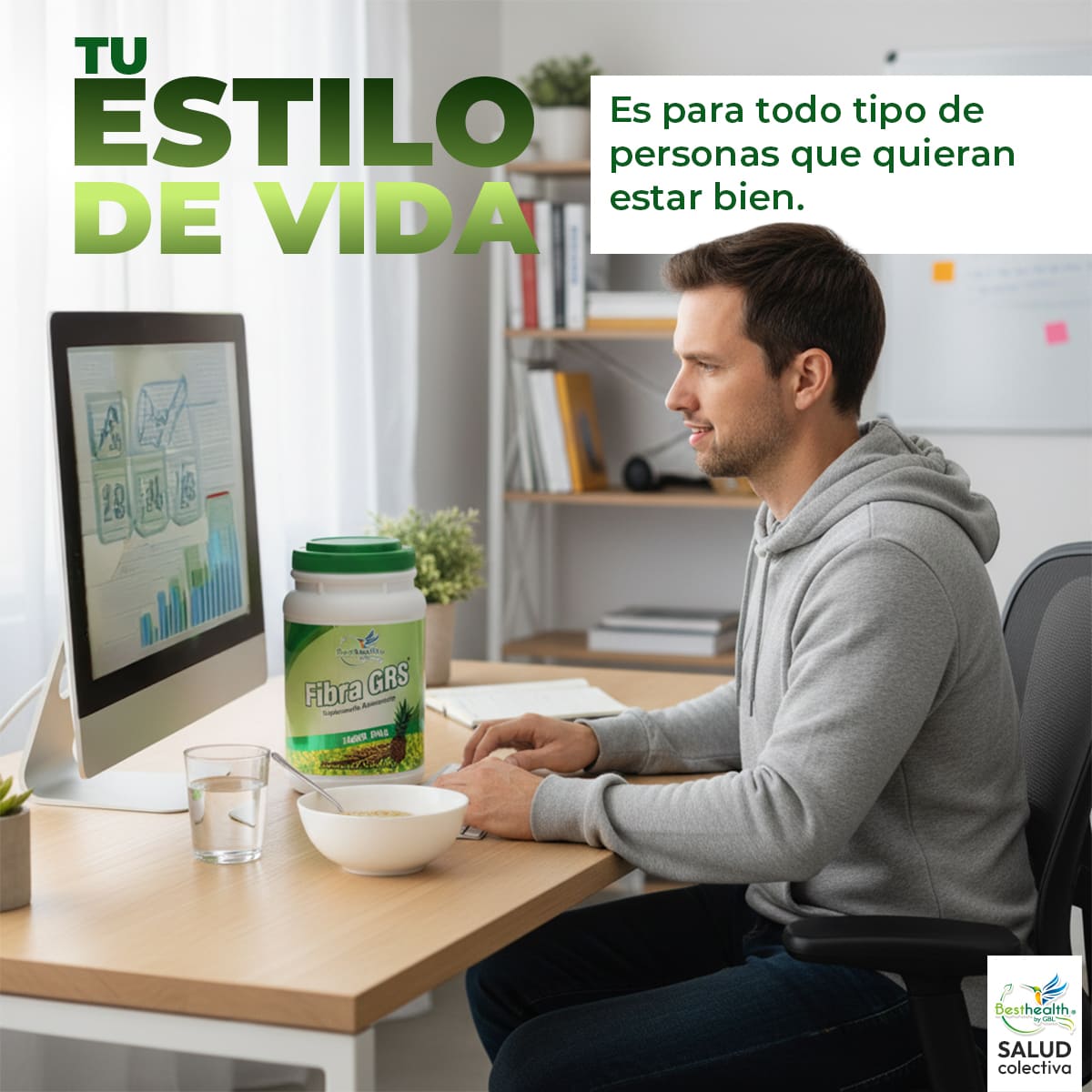 1 cucharada (14 g) de Fibra GRS en un vaso de agua simple, si lo prefieres combínalo con fruta y verás que es una rica combinación.