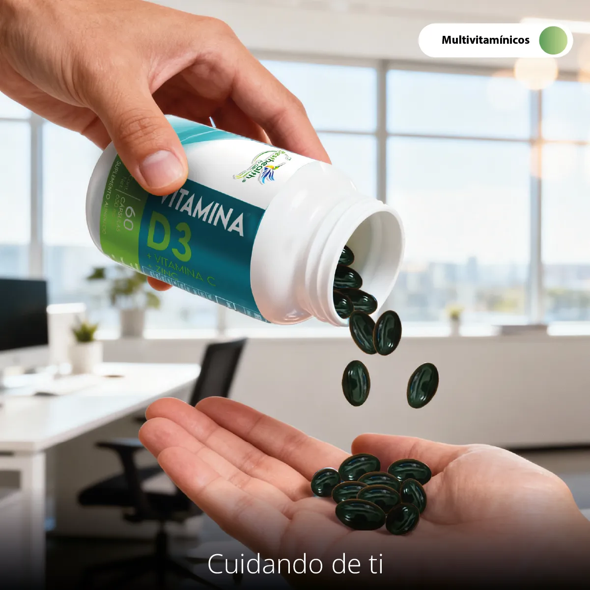 Prepara tu cuerpo para cualquier temporada con la fórmula de triple acción de Best Health. Esta combinación inteligente de Vitamina D3, Vitamina C y Zinc ha sido diseñada para quienes entienden que el bienestar es la base de todo logro.